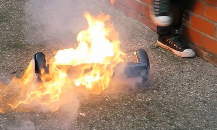 一位少年兴高采烈地拿着自己从 eBay 买回来,充了一整晚电的滑行车出门,打算体验一下这个爆款产品。结果滑行车不但没启动起来,还突然着火了。刚好这段悲惨的经历全都用视频记录了下来: