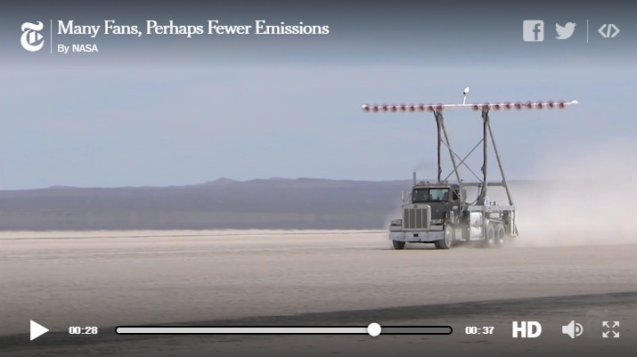 除了为飞机减重,EAR 的研究几乎囊括了飞机的方方面面,就连引擎摆放的位置这些基础问题也是其中之一。提到引擎,EAR 另有一个研究概念,用一组小引擎代替原本的大引擎,并用卡车头在地面进行了试验(上图)。