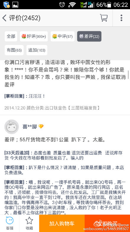 然而,这个回复水准少了点机智,既不能解释问题也不能安抚顾客——等于没说。于是我想起了国内唯一一个讲脏话骂人还能拿钱的职业:淘宝差评师(应该分 2B、2C 两种),代表中国最高回评水准。翻了翻,嗯,别有一番风味。