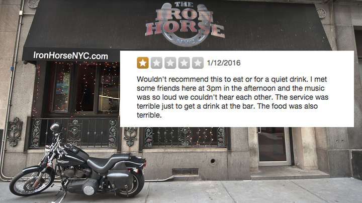 互联网上的评价与回复是一场斗智斗勇的较量。淘宝上的撕逼谁都见过了,今天看看纽约上演的一场用户与店家的撕逼演义。据 Reddit 报道,一妹子 Megan 通过 Yelp(点评应用)评价了她去过的一家叫“Iron Horse”的酒吧,对服务非常不满,怒给一星。