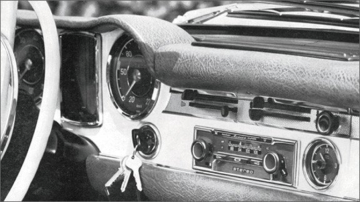 随着汽车的不断普及和应用范围的扩大,驾驶员与车内乘客在长途行车过程中容易产生孤寂与无聊情绪,车载娱乐设备随之出现,最开始是摩托罗拉,在当时就是车载收音机代名词,为了方便驾驶员操作同时也能兼顾副驾驶位置的乘客操作,这类新兴的车载娱乐设备便安装在了风挡中央下方,而那些行车状态的仪表盘移到了我们现在熟悉的方向盘前方的风挡下。