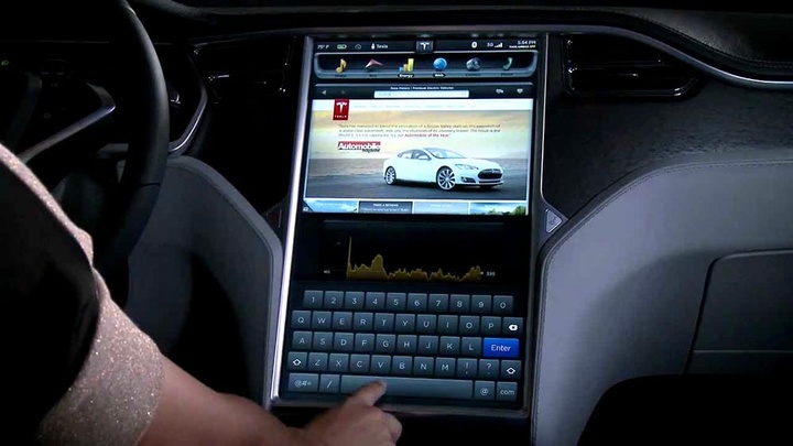 此后,诸如磁带播放器、CD 播放器、车载音响系统、导航系统……这些因为车内空间的关系,也都基本集中于中控位置。这导致现代的汽车中控台设计功能越来越多也越来越复杂,但是傻大粗黑的按钮式设计能够让驾驶员做到通过物理触摸反馈来进行盲操,从而降低分散驾驶视觉专注度的风险。 直到特斯拉的出现,将所有中控的操作都集中于一块巨大的电容式触控屏中,化繁为简,充分利用有限的中控显示区域展示更全面的功能,在简单的操作中体现车载功能的先进性,逼格高大上。