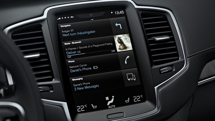 而沃尔沃推出的 Sensus 人机交互系统在中控的设计上异曲同工,也都采用了电容式触控大屏设计。