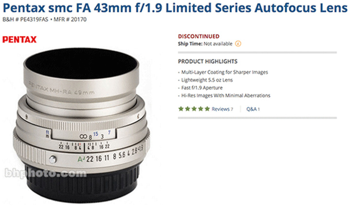 另外,它透露宾得将推出 FA 43mm F1.9,但他们并没有透露发售时间。按照目前的状况去估算,这款镜头可能和 K-1 一同发布。