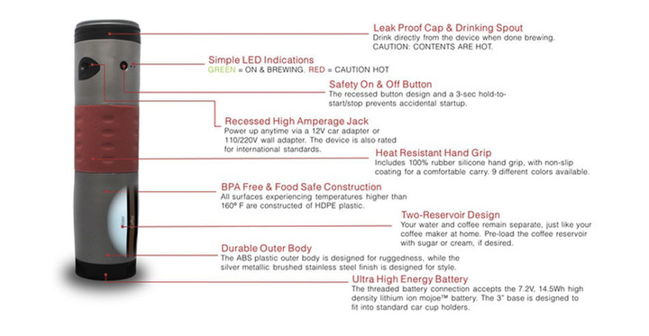 另外,MoJoe 的充电也能满足它在便携方面的需求。在一般状态下,用户能够用普通的插座和汽车电源适配器为 MoJoe 充电,它也只需要 20 到 30 分钟的时间就能够充满。对于想在旅途中享用现制咖啡,但是却不想受水温、咖啡店限制的背包客,MoJoe 还是一个不错的选择。