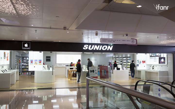 在去完这家 Apple Store 后,我去了离这家店最近的、位于天河城的苹果官方认证经销商 Sunion,由于今天并非周末,而且又赶上下雨,这家店里只有一两位顾客。我问店员是否会担心 Apple Store 开业影响到他们的生意。他们表示并不担心,因为这家经销商所处的位置仍然很旺,而且他们也会时不时地会进行降价优惠活动。