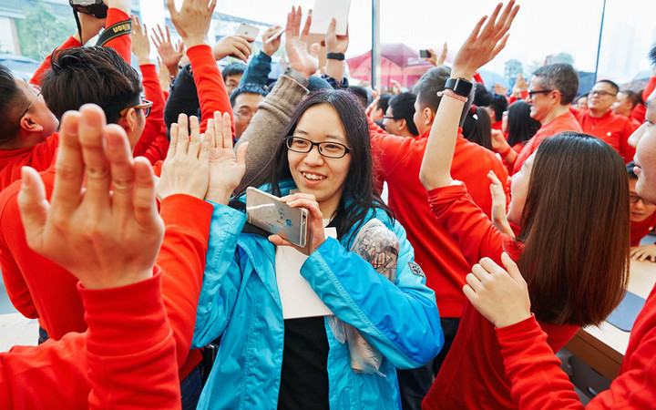 这样热闹的场景在各地苹果的 Apple Store 开业的场景并不罕见,广州店是苹果在中国的第 32 家店。根据苹果负责零售及在线商店的高级副总裁 Angela Ahrendts 之前公布的计划,到今年年中,苹果在中国的 Apple Store 数量将会增至 40 家。从 2008 年苹果在北京三里屯开设第一家 Apple Store 至今 7 年多的时间里,苹果以每年超过 5 家店的速度在中国扩张。