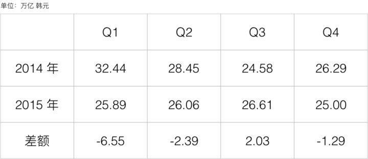回顾 2015 年全年财报,也可以发现三星手机制造部门一整年,除了第三季度外,销售额同比 2014 年均有下滑。