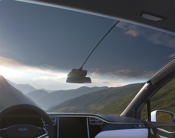 - Model X 的“前挡风玻璃”直接与头顶的天窗相连,通过一整块的单块玻璃提供更开阔的视野。