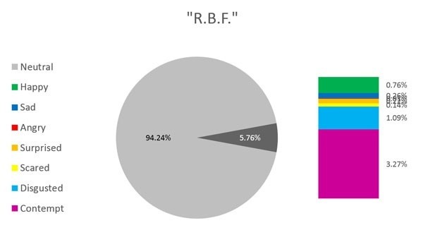 首先研究员用软件处理了一组“真正无表情”的图片,在软件中显示为 97% 的“中性表情”,换言之只有 3% 的表情体现出了情绪。然后插入凯耶·韦斯特、克里斯丁·斯图尔特、伊丽莎白女王的照片,显性情绪变成了 6%,猜猜是哪种情绪飙升了?