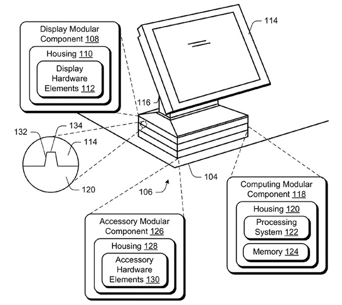 最新的一份专利申请文件显示,微软在去年 7 月申请了一份“模块化计算设备”的专利,它可以按照用户的需求组装 PC 组件,当用户想要升级电脑配置时,用户只需要购买特定的组件就可以。