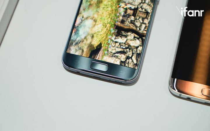 Galaxy S7 屏幕为 5.1 英寸 2K(2560×1440)的 Super AMOLED 屏幕,PPI 高达 577,精细度自然没得说,而即使 S7 edge 因为屏幕变大,PPI 降为 534,其精细度依旧无可挑剔。两者的屏幕整体观感也依然明亮、鲜活。下方的 Home 按键和往常一样集成了指纹功能,采用和 iPhone 一样的按压式设计。