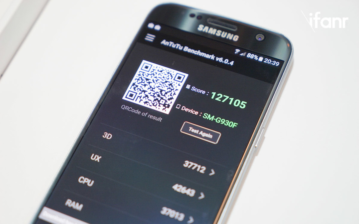 经过“安兔兔”跑分测试,Exynos 8890 版 S7 的最终成绩也不遑多让,得分 127105。不过两个处理器版本的 S7&S7 edge 在性能方面究竟有没有差异,还是需要后续进一步测试才能揭晓。