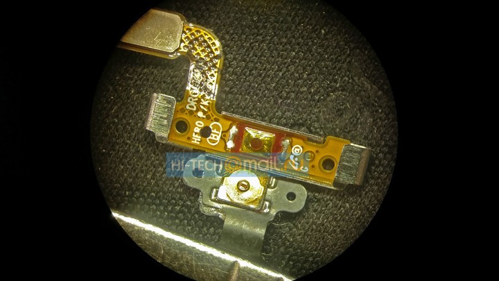通过特写可以看到机身下部的数据接口、喇叭还有震动单元。并且通过同轴线以及排线与上部主 PCB 相连。