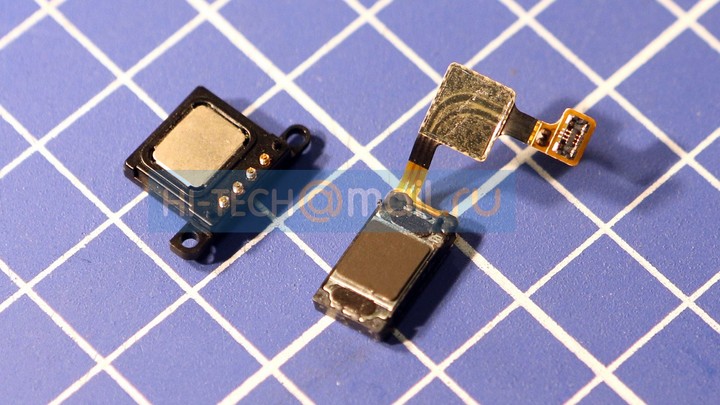 两个被拆下来的小部件(有网友评论表示应为听筒和话筒)。