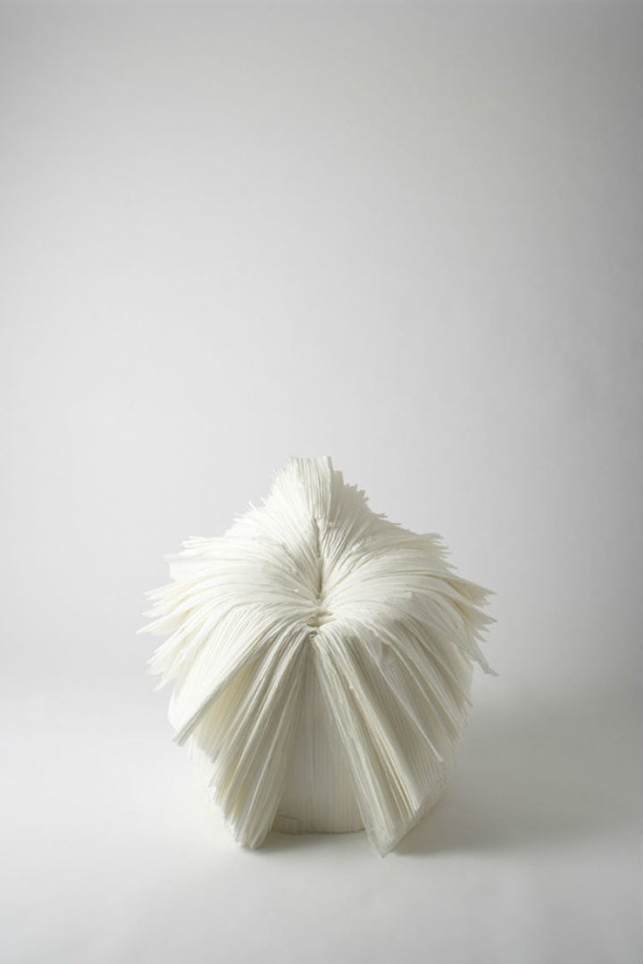 这款 Cabbage 椅子绝对可以称为 Nendo 设计工作室设计作品中的一朵奇葩,它完美地诠释了有趣和无用。对于椅子你的要求是不是只要能坐即可?但 Nendo 偏偏不让你就那么简单的坐下去。Cabbage 看上去就像一卷巨大的卫生纸立在那里,找不到任何可以坐的地方。但当你把拉链拉开再一层一层地将“纸”像剥圆葱一样剥开,你会发现坐起来还是比较舒适的。但这样一款椅子无论摆在哪既不美观又不实用。