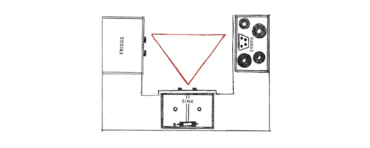 前者需要演示人走动 281 步才能完成,而后者只需要 41 步。单凭厨房的改进就可以把烤蛋糕的效率提升 85%!但是三角形厨房没有改变的,是人们固有的一种观点:女性应该把大部分人生都花在厨房里:在这三角之中无尽地徘徊。