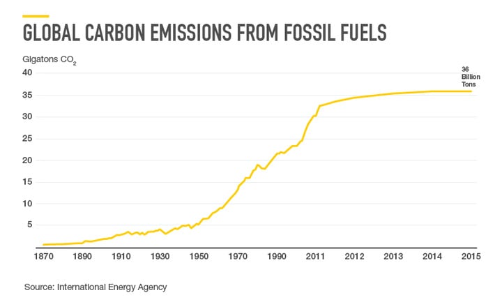 除了水电和核能,世界上绝大部分的能源是由如煤这样的化石燃料生成的,它们的燃烧产生巨量的二氧化碳。但是在这方面也有一些好的进展。新的绿色科技使世界能够利用太阳能和风能得到更多的无碳能源。