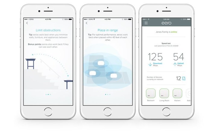 Eero CEO Nick Weaver 表示,当 eero 一套三个设备同时运行的时候,这种如魔术般的情景就会出现。“你会得到更快、更可靠的速度,因为你的设备离发射 Wi-Fi 信号的路由器更近。我们还用了两个无线电设备和特别的软件,以使你在一个网络名下得到比使用范围延展器更好的服务。”