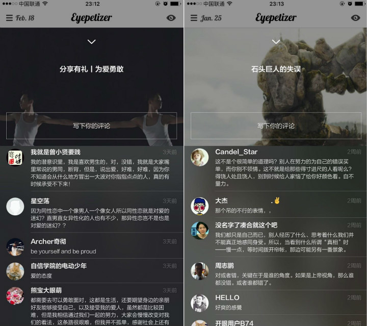 讲到利用用户反馈推动运营,张强提到了推出后评价两极分化严重的评论功能。开眼做这个功能的初衷,是因为当 app 不能评论时,开眼的公众号经常会收到用户的意见、对视频的问题或者感想。而开眼发现,在这些反馈中,确实存在着优质的内容,如果能把它们沉淀下来,会对之后观看的用户理解视频非常有帮助。