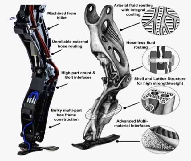 波士顿动力的创始人兼主席马克 · 雷波特(Marc Raibert)告诉 IEEE:“工程团队做了大量工作,让 ATLAS 变得更轻更紧凑。我们使用 3D 打印制作机器人的腿部,这样制动器和液压管可以嵌入腿部结构里面,而不是作为独立单元放在外面。此外,我们还开发了定制版的伺服器,比之前使用的版本更小更轻。”