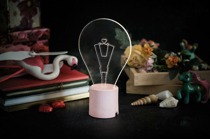 它的底座也是利用混凝土制作而成,为了美观同时适合男女两性使用,底座上加上了体验少女情怀的浅粉色和展现男性豪迈心的土豪金等多种颜色。灯泡处和 Kapsulite 三重奏灯的灯泡一样,采用扁平化的设计,灯丝上还有一个可爱的小心形。