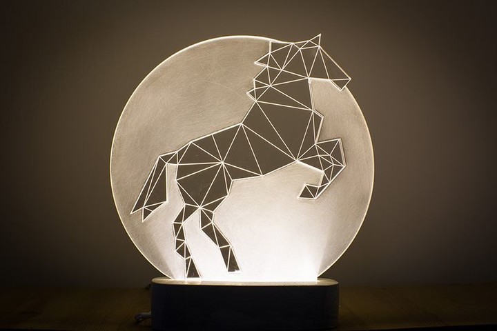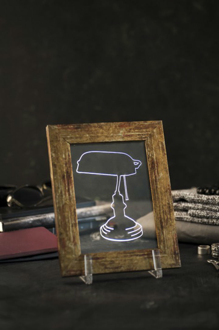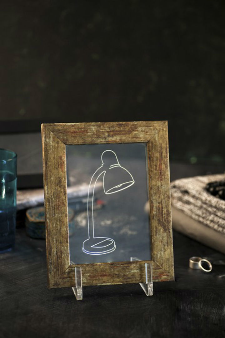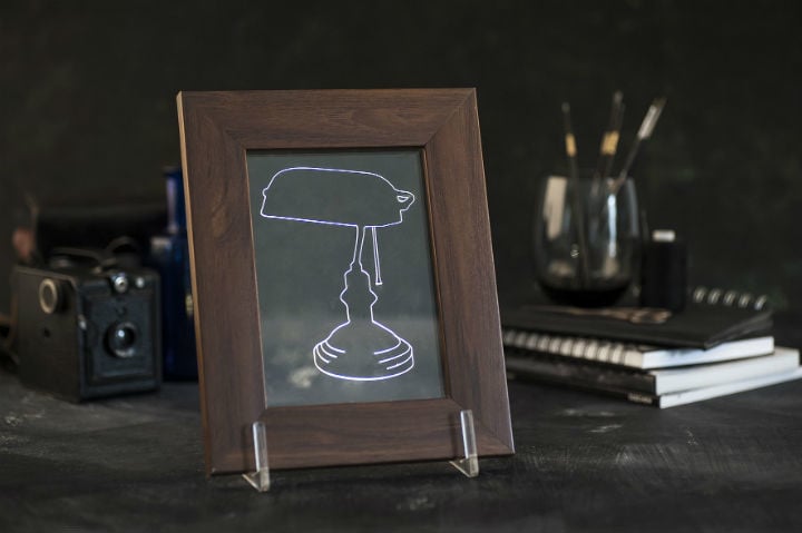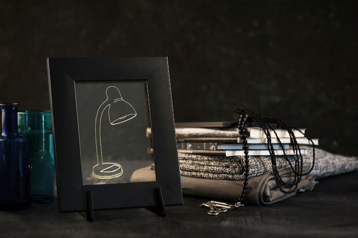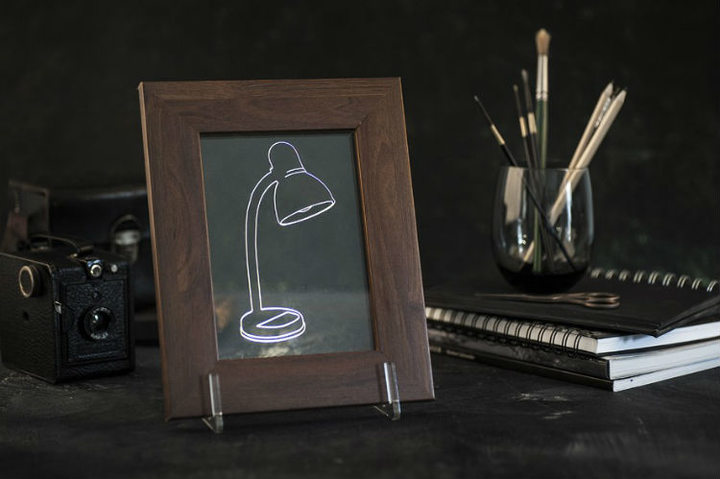 他们将现代的相框与照明相结合,设计出这款灯。灯罩部分是传统的木质相框,但他们巧夺天工一般在相框内用亚克力雕刻出台灯灯其他形状,之后附上 LED 光源。