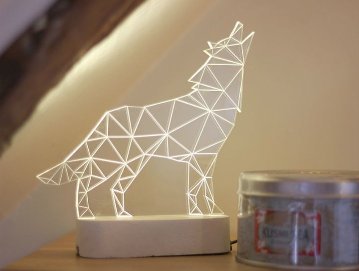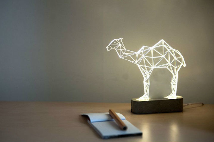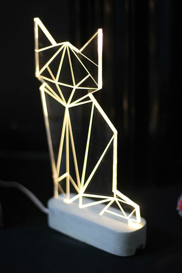 它们有棱有角似一个个栩栩如生的动物,它们轮廓分明看上去只有灯丝在发光并看不到灯罩。它们的底座依旧是采用混凝土制作而成,利用激光将亚克力雕刻成不同的动物形状,内置了 LED 发光泡。