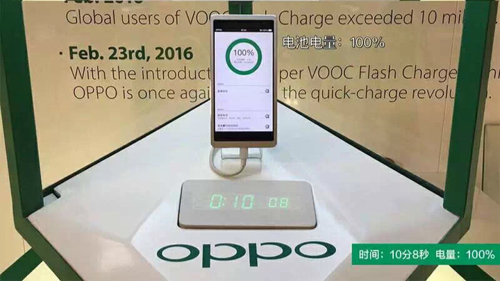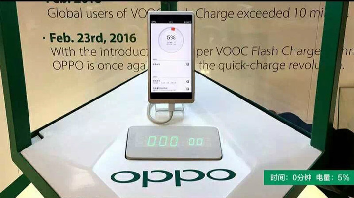之前的 OPPO R7 系列一直以 “充电 5 分钟,通话 2 小时” 为广告词。在上周 MWC 展会的现场,搭载 VOOC 超级快充的原型机用大概十分钟的时间充满了 2500 mAh 容量的电池,不知可能搭载这一快充技术的 OPPO R9 能否达到 VOOC 超级闪充所宣传的 “充电 5 分钟,通话 10 小时”。