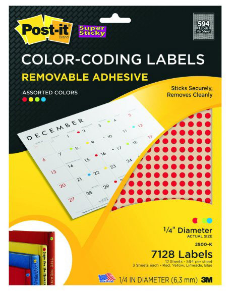 3M Post-it 0.75 寸直径圆形多色报事贴。这些大的用来表示权重更高的票。