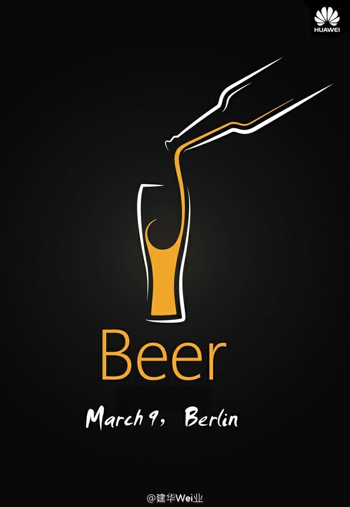 比如上图中这张预热海报。除了华为商标外,其上还有几个关键词,“3 月 9 日”、“柏林” 以及一杯啤酒和 “Beer”。P9 的谐音刚好和 “啤酒” 一致,所以这张海报已经把 P9 发布会信息告知清楚了,即 P9 将会在 3 月 9 日于德国柏林发布。