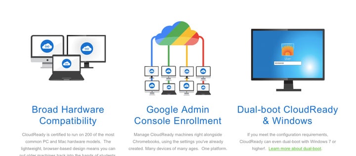 这款 CloudReady 软件支持 Windows 的 PC 以及 Mac 系列电脑,目前是以免费的形式对外供应。用户只需要按照相关的教程到官网上下载软件、安装就能够实现旧电脑复活的目标: