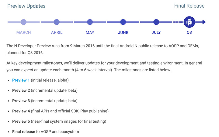 这次 Android N 出来的日子实在有点早,Android M 估计还有好多人还没用上,而 Google I/O 大会也还有两个多月才举行,根据 Android 开发者官网的介绍,在今年第三季度最终正式发布之前,Android N 将会有五个开发者预览版放出,平均每 4-6 周放出一个版本。今天我们看到的第一个预览版连 Beta 版都算不上,只是 Alpha 版,并不能保证能够应付日常使用的需求,千万别在你的主力机上刷机升级。这篇文章中演示的 Nexus 6 来自爱范儿的 Android 开发工程师。想看看它到底怎么样,接着看下去就行了。