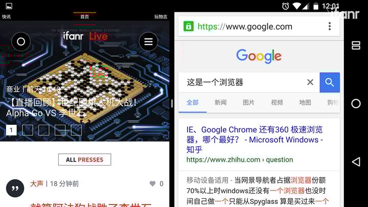 之前在 Galaxy Note2 我们就已经看到过分屏的功能,在 iOS 9 上,苹果也为 iPad 增加了分屏的功能。Android N 加入这项功能后,将会有更多人能体验上分屏操作(就是不知道各大手机品牌什么时候跟进)。