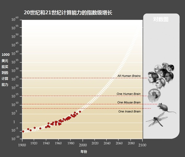 Kurzweil 认为考虑电脑的发展程度的标杆是看 1000 美元能买到多少 cps,当 1000 美元能买到人脑级别的 1 亿亿运算能力的时候,强人工智能可能就是生活的一部分了。