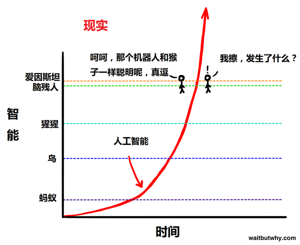 一旦超人工智能出现,人类任何试图控制它的行为都是可笑的。人类会用人类的智能级别思考,而超人工智能会用超人工智能级别思考。隔壁老王想要用互联网,因为这对它来说很方便,因为一切它需要的资源都已经被互联网连起来了。但是就好像猴子不会理解怎么用电话或者 Wi-Fi 来沟通一样,我们同样没有办法理解隔壁老王可以用来和周围世界交流的方法。