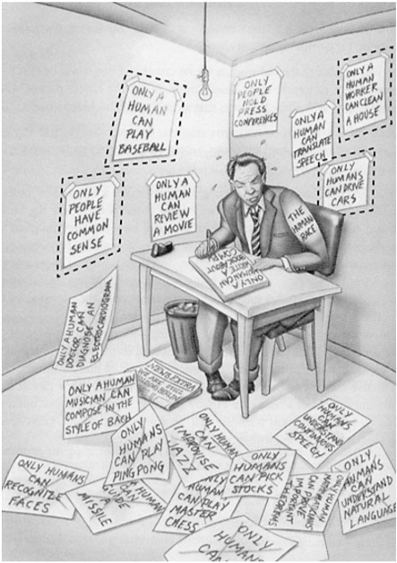 用计算机科学家Donald Knuth的说法,“人工智能已经在几乎所有需要思考的领域超过了人类,但是在那些人类和其它动物不需要思考就能完成的事情上,还差得很远。”
