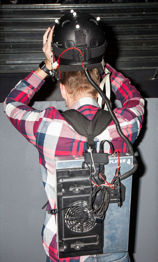The Void 还设计了背包,让用户把电脑背在身上。这样就摆脱了电脑线缆的限制。