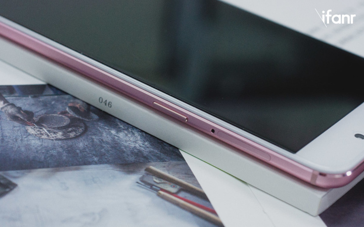 正面指纹识别、2.5D 弧面玻璃、圆角矩形、圆润的边角、金属后盖、底部扬声器-USB 接口-耳机孔的布局、横穿后盖的信号带乃至略微突起的摄像头,整体来看 R9,尤其是我手中拿到的这台玫瑰金版,的确和 iPhone 6s Plus 非常相似,虽然 R9 的玫瑰金颜色要更艳一些。如果仔细看的话,R9 相比 iPhone 6s Plus 玻璃面板和金属后盖之间的过渡多了一圈金属倒角切边和塑料,视觉上更闪耀,但实际的触感要割裂一些。