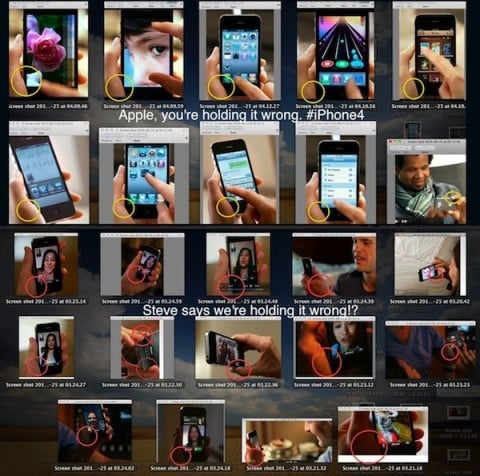 于是 Engadget 截取了一张这样的图,指出苹果广告中出现的许多持机姿势都可能影响信号,还有网友调侃 iPhone 4 所谓的正确手势——就是“兰花指”。一时间舆论从“迄今最完美的手机”转向“一款有重大缺陷的手机”。7月初,《消费者报告》(ConsumerReports)进行了一些严格的测试,表示鉴于天线问题,不推荐消费者购买 iPhone 4,此举将“天线门”事件推向高潮。