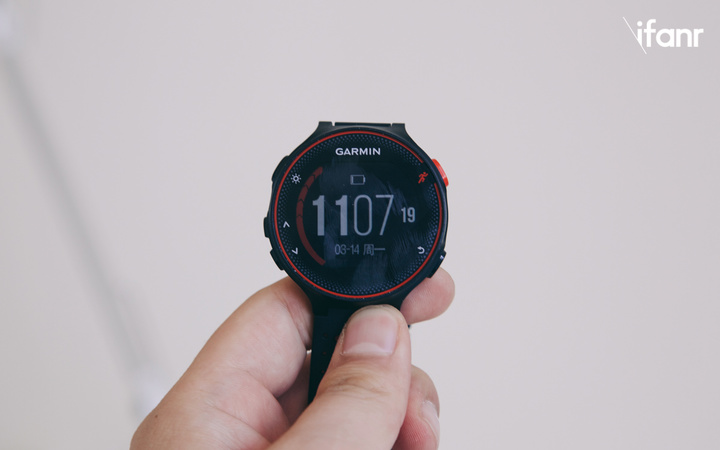 Garmin 235 相比于前两款智能手表更像是一款专业运动电子表,电子墨水屏幕,不能进行触控,需要借助按键来进行操作,但其好处在于,避免了日常的误触,同时电子墨水屏也让 Garmin 235 的电池续航时间碾压前面两款智能手表。