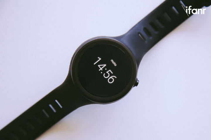 Moto 360 2 运动版采用了与机身融合在一起的硅胶表带,一体化硅胶机身的设计让表带能够更好的与手腕契合,提供更为舒适的佩戴感受,柔软的硅胶表带耐汗且不容易引起过敏。但 Moto 360 2 运动版的表带容易沾染灰尘,尤其是在春天干燥容易起静电的环境下。好在这款手表支持 IP67 防水,直接冲水清洗就好。