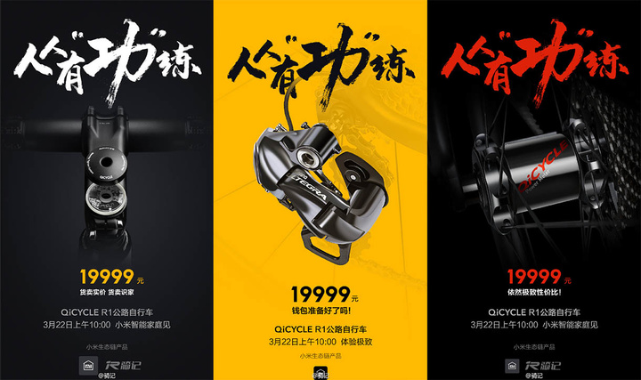 从骑记官方微博公开的 QiCYCLE R1 宣传海报发现,这款 QiCYCLE 采取的策略跟小米其他产品的风格类似,都是通过整合一些好评度较高的配件产品来强调自身的性价比。