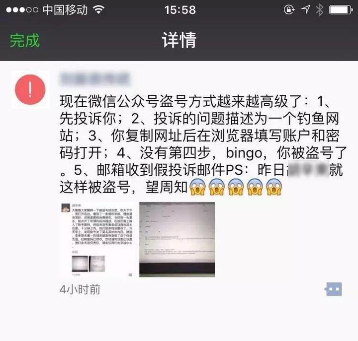 就像过去常有 QQ 号被盗,在基本人人都在做公众号的今天,盗公众号也猖獗了起来。昨天微信官方公众号“微信派”就发文称最近陆续收到用户反馈,他们的公众帐号被一种新型的盗号方式盗去了: