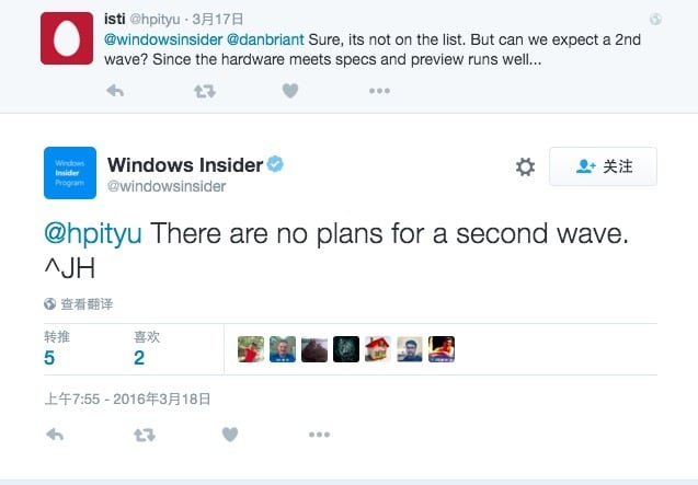 如果你没有在列表中发现你的设备(比如 Lumia 920 的用户),只能说很遗憾,因为微软曾在 Windows Insider 官方 Twitter 表示,没有第二轮推送计划。