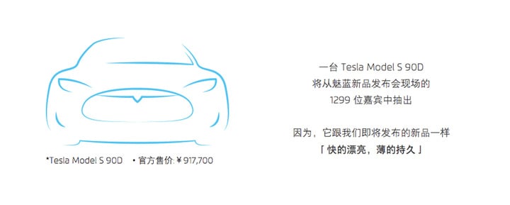 魅族在公开发布会宣传图时,也上线了一个新的抽奖活动:发布会的参加者需要按照页面规则填写资料,就能参与抽奖,而奖品会是一台特斯拉 Model S 90D。