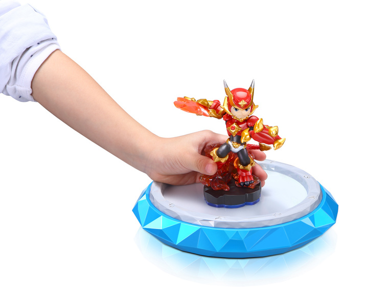 我们爆料曾提到,《梦想召唤王》这款产品可以通过下面的通用底座与移动设备(如手机、平板)进行互动。具体的做法与任天堂的 Amiibo 相似:玩具人偶可以通过 NFC 与底座配对,底座则可以通过蓝牙与手机或平板配对连接,连接好之后,用户即可以在手机、平板上玩动作 RPG 游戏,英雄角色就会进入到虚拟游戏中,与用户产生互动,共同冒险。
