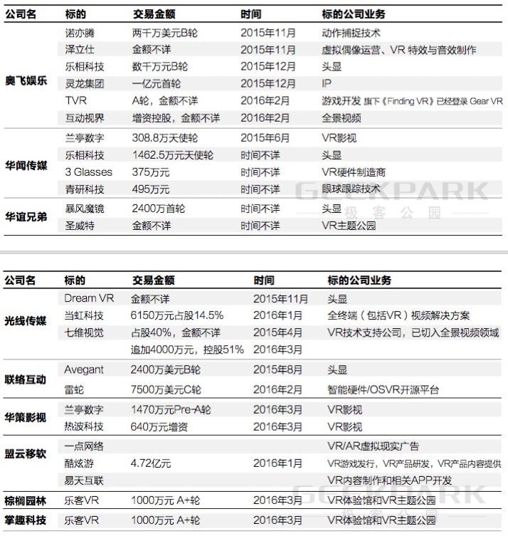 除了上述公司,还有不少上市公司在 VR 领域做了布局: