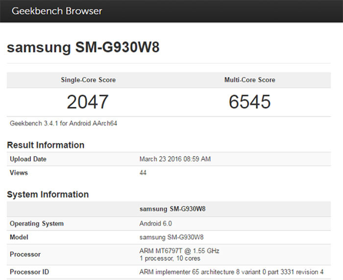 根据 SlashGear 的报道,一款代号为 Samsung SM-G930W8 的产品现身 GeekBench 跑分库,很明显 SM-930 可能会代表的是三星 Galaxy S7,而 W8 很有可能是其不同地区网络制式的一个变种。