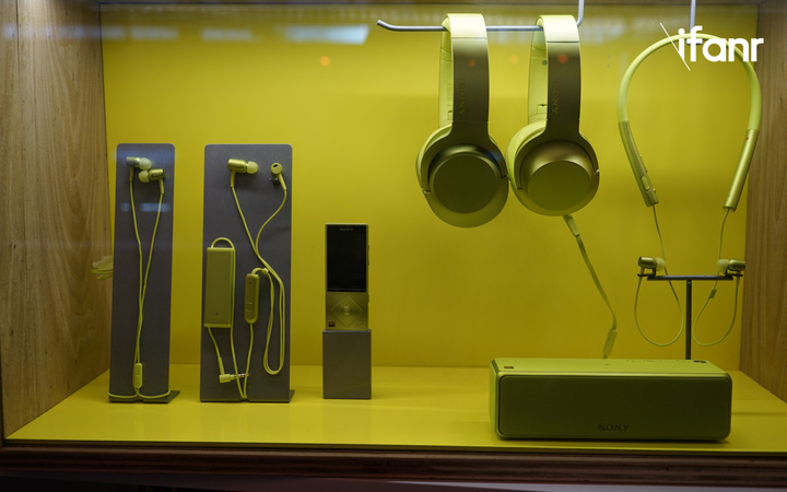 索尼的音频展示区里,Hi-Res 金标依然显眼,几乎所有的索尼音频产品上都能找到这标志。高冷低调的黑胶唱机以及 MDR 系列耳机还有 ZX2&ZX100,年轻张扬的“h.ear”系列耳机及 A 系列 Walkman 对于大家而言,它们都算是老朋友了。